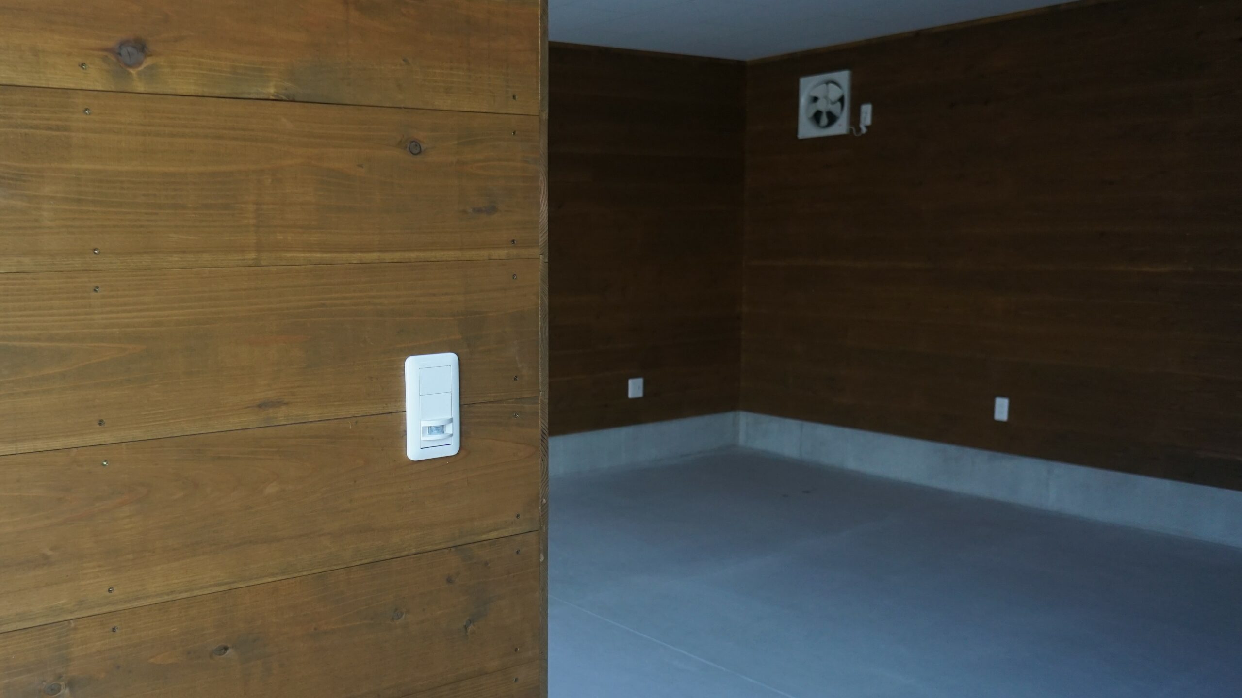 - ◆ ガレージ内木板貼りでビス打ち可能